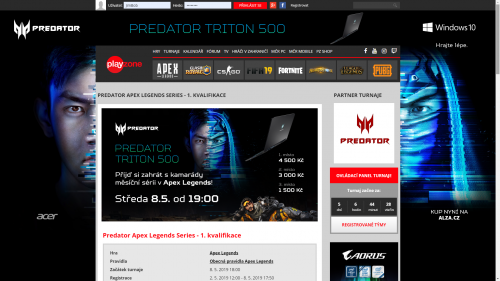 V květnu jsme pro klienta ACER organizovali měsíční turnajovou sérii v populárním battle royale titulu Apex Legends. Série se skládala ze třech kvalifikací s následným finále a byla doprovázena marketingovou kampaní s propagací herního notebooku Predator Triton 500. |