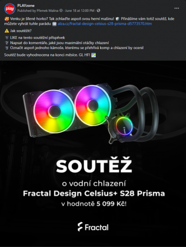 In June, we launched a new collaboration with Fractal Design. For this popular manufacturer of computer components, we run a competition on Facebook, publish a PR article on PLAYzone.cz and display a video ad across our several online streams. |