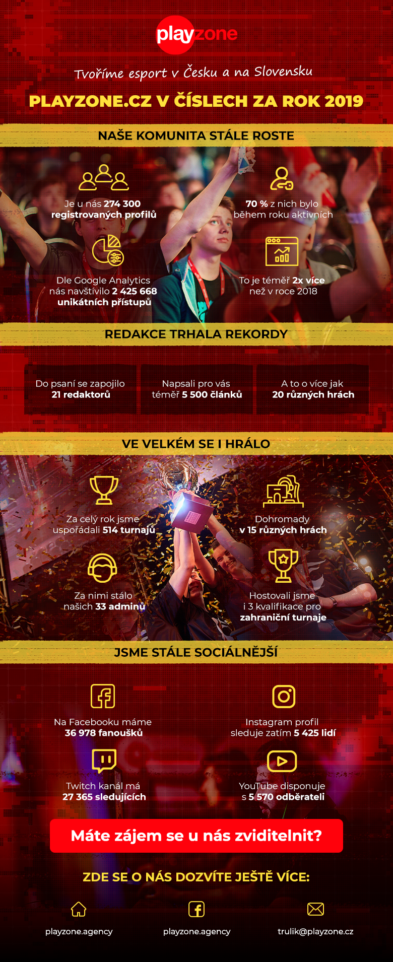 rok 2019 je za námi a my bychom Vás rádi seznámili s tím, jak se v něm dařilo našemu portálu www.PLAYzone.cz.