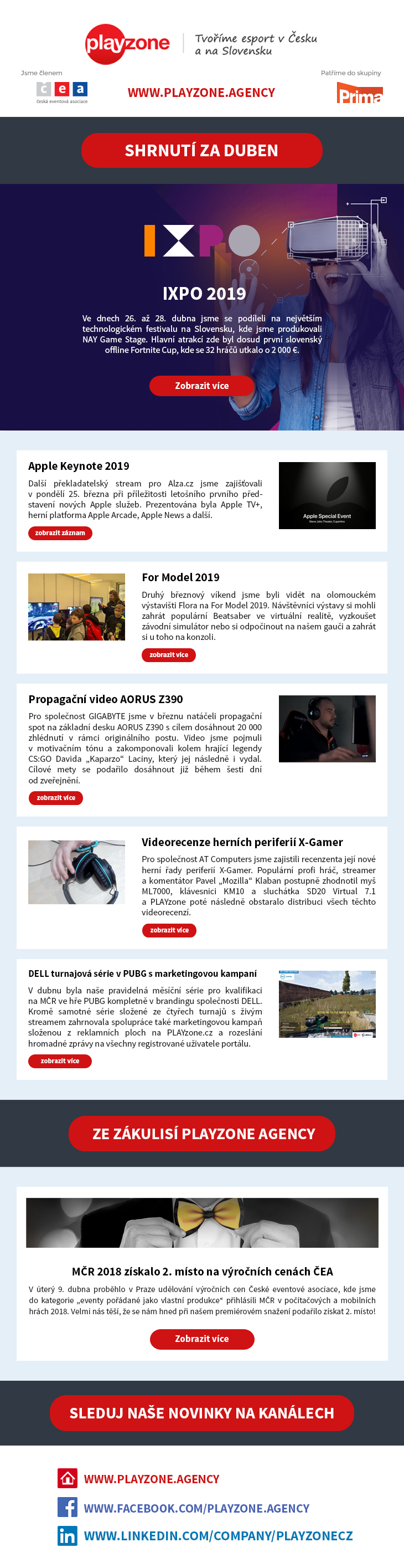 Shrnutí našich dubnových aktivit Dovolujeme si vás pomocí stručného shrnutí informovat o našich nejdůležitějších dubnových aktivitách.